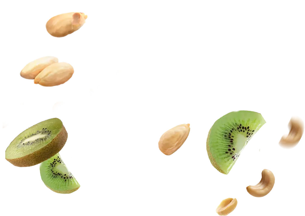 La mezcla combina almendras nacionales, anacardos tostados, cacahuete y kiwi liofilizado para ofrecer una experiencia única: sabor, textura, nutrición y diferenciación real.